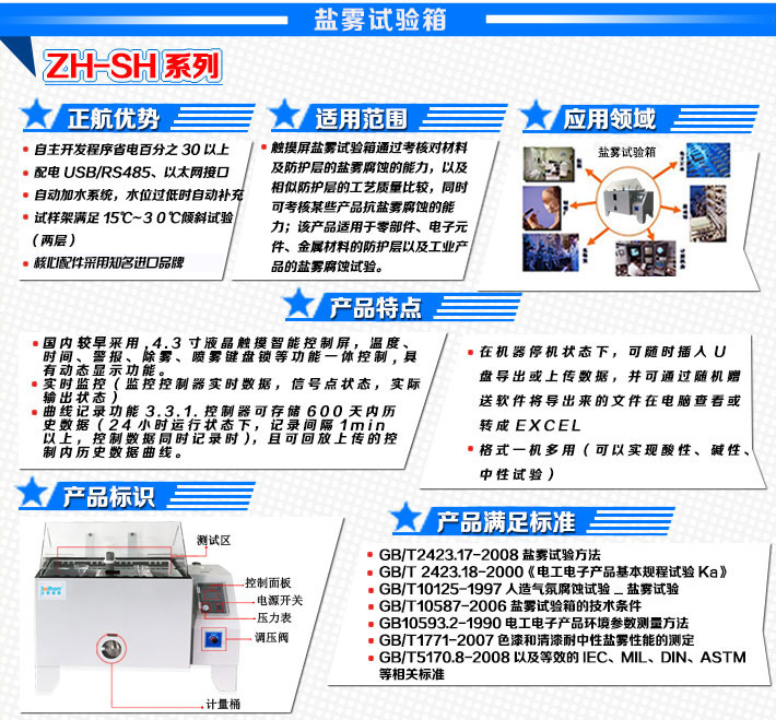 正航鹽霧試驗箱是采用鹽霧腐蝕的方式來檢測被測樣品的分別耐腐蝕的可靠性,鹽霧是指大氣中由含鹽微小液滴所構成的彌散系統(tǒng),是人工環(huán)境三防系列中的一種,很多企業(yè)產(chǎn)品需模擬海洋周邊氣候?qū)Ξa(chǎn)品造成的破壞性,所以鹽霧試驗箱應運而行。鹽霧試驗分為中性鹽霧和酸性